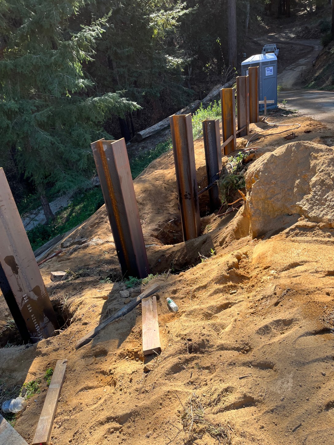 With all the steel on site, we can start putting the piers in place for the retaining walls. Note, these retaining walls are not even for the ADU, they're to stabilize the site of the main house. Also, they're much more extensive than the "retaining walls" that were in place before the fire. So, our… Continue reading Let It Pour