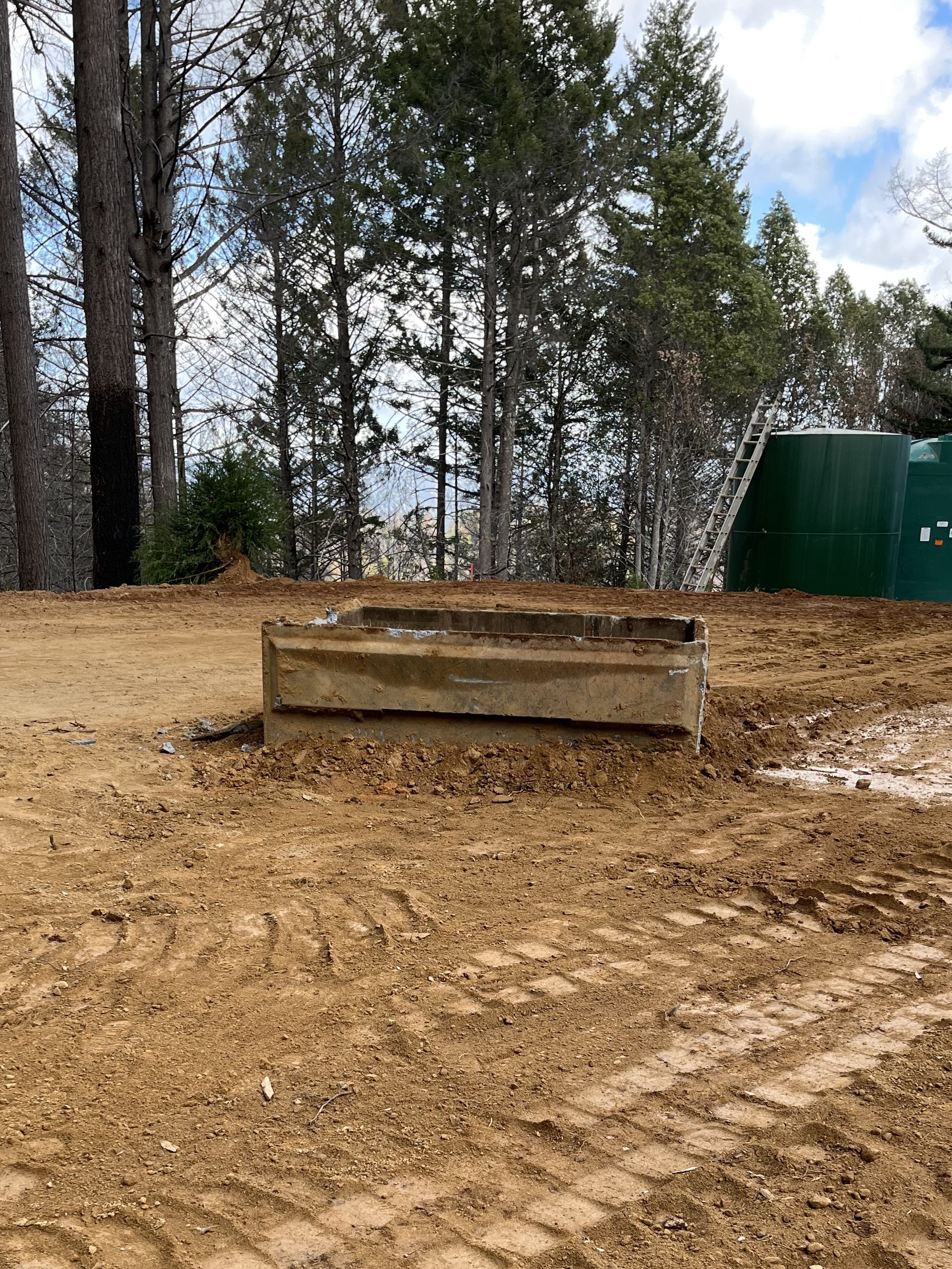 A septic tank. Buried on the top of a hill. Never permitted. The county knew nothing about it. So now that has to get broken up and removed, since it’s smack in the middle of where we want to put a foundation. At least the hole it leaves will consume some of this extra dirt we’ve got.