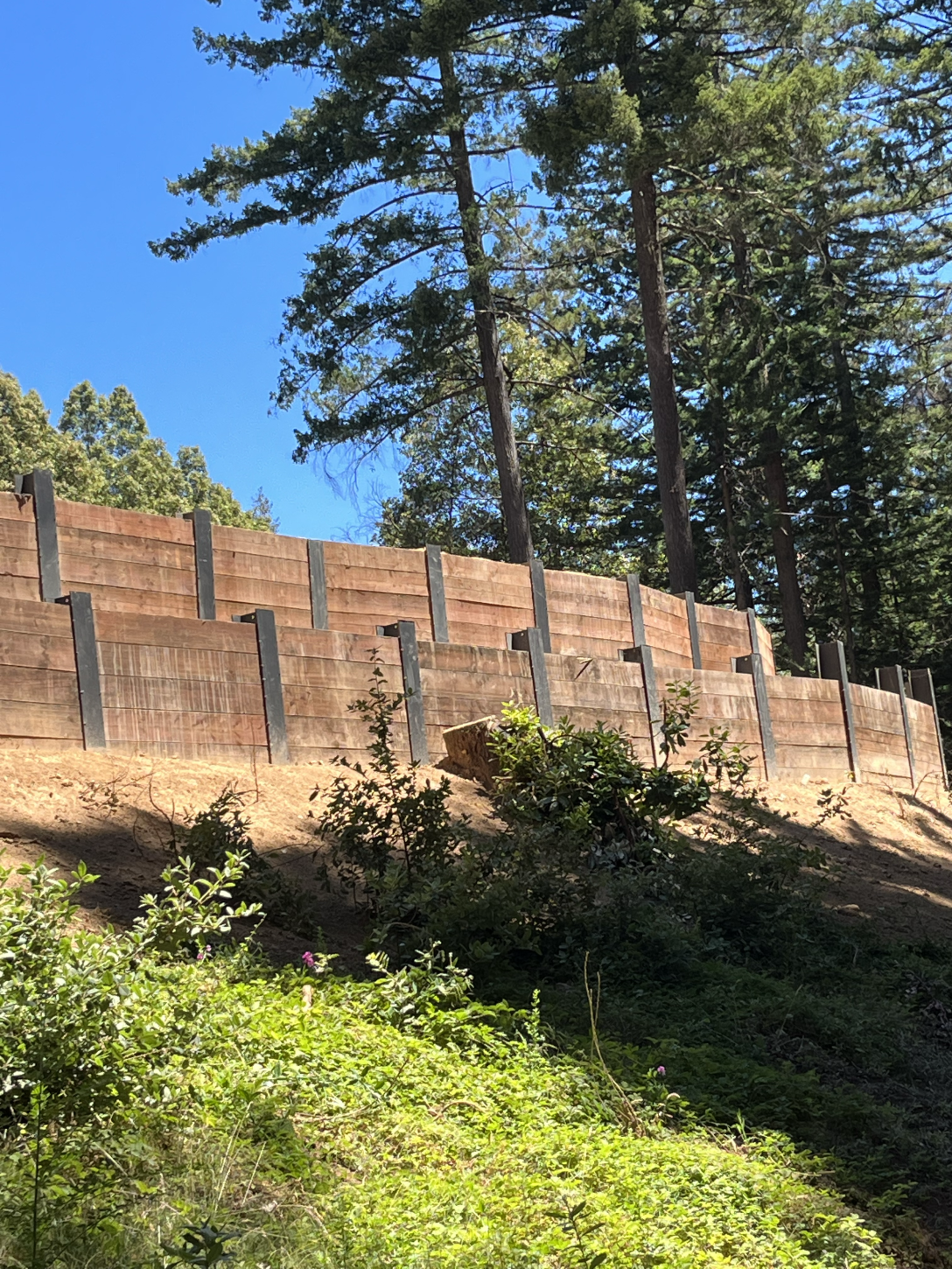 The second, lower, retaining wall is in place, and the backfill has been compacted. Now there’s a nice level path between the walls — it should look quite nice with some potted plants, don’t you think? As well as the retaining wall, the guys have laid down the first layer of wood on the ADU… Continue reading Start Building